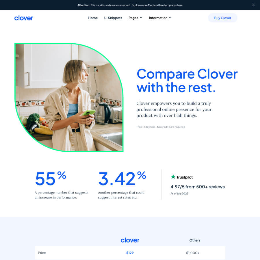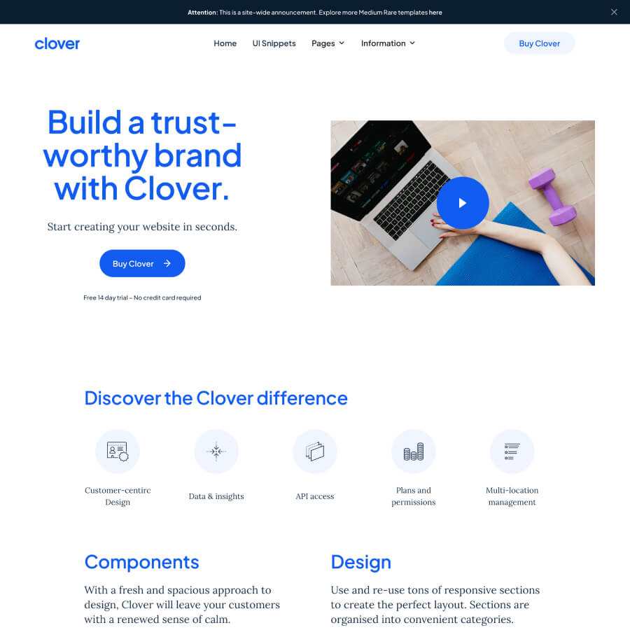 Clover offers a tight design with all the features you need to get your startup site off the ground, or refresh your website.